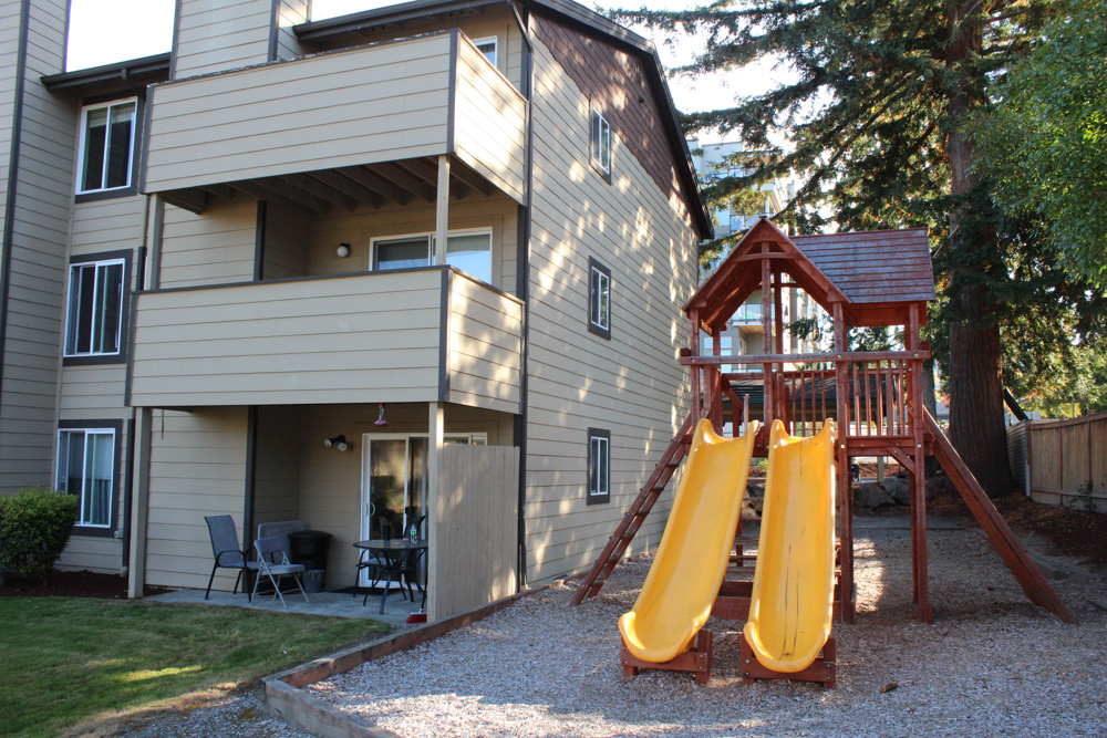 Our apartment homes are a great value, featuring a full kitchen, full size washer/dryer, upgraded flooring, patio/balcony with extra storage, assigned covered parking, and a playground. Stainless steel appliance package options are available. Our playground and greenbelt offer a great place for kids to play.